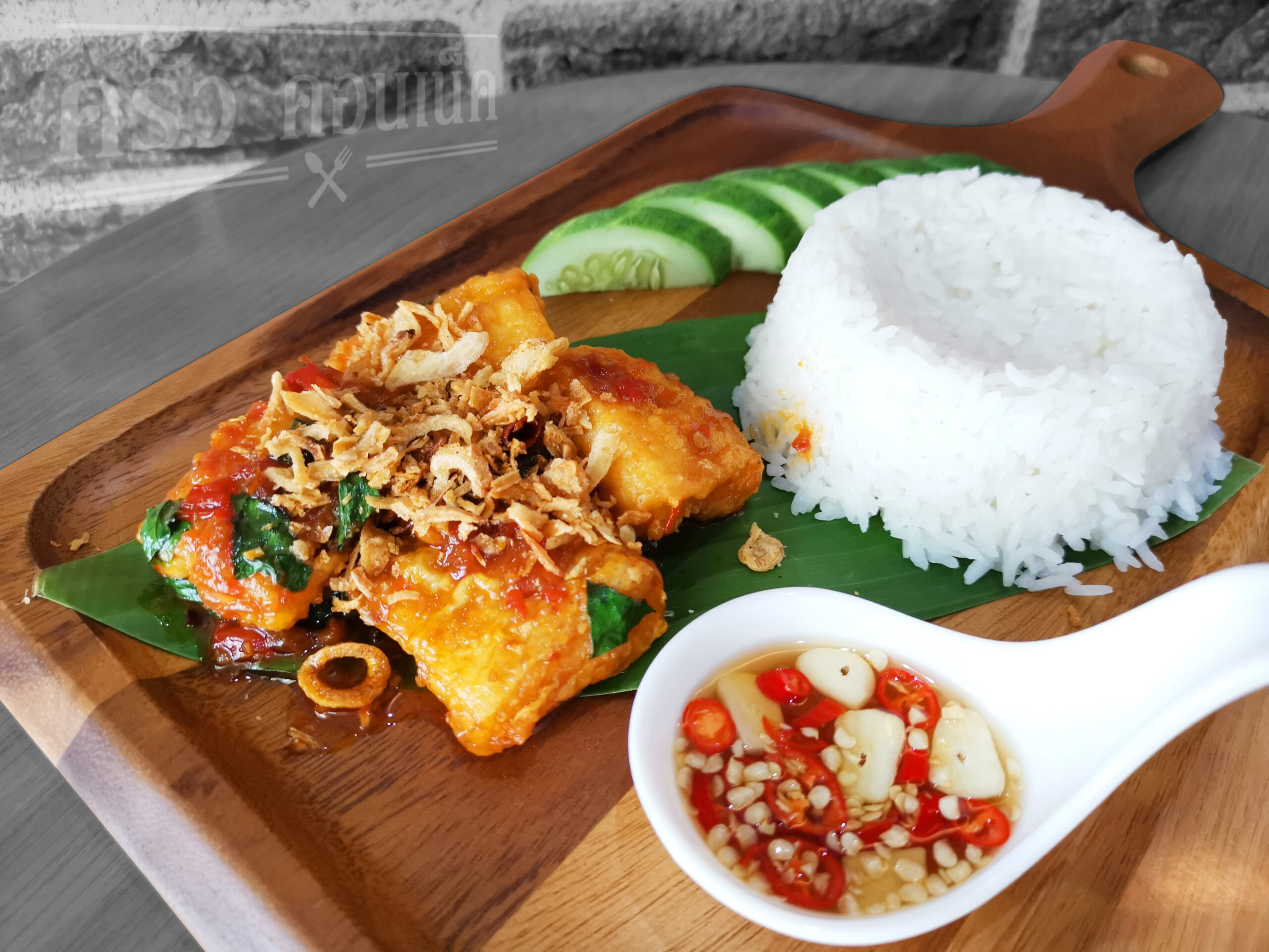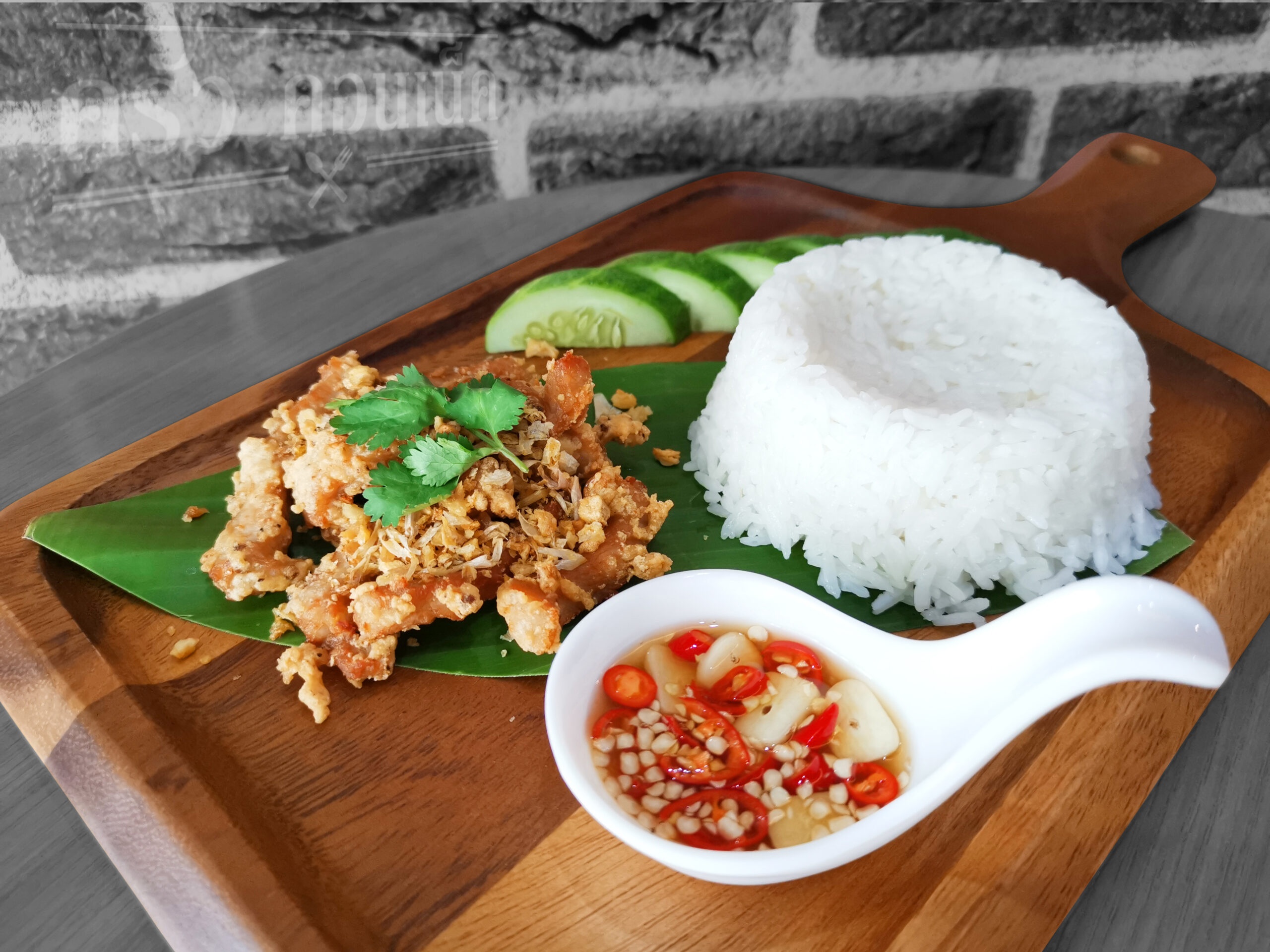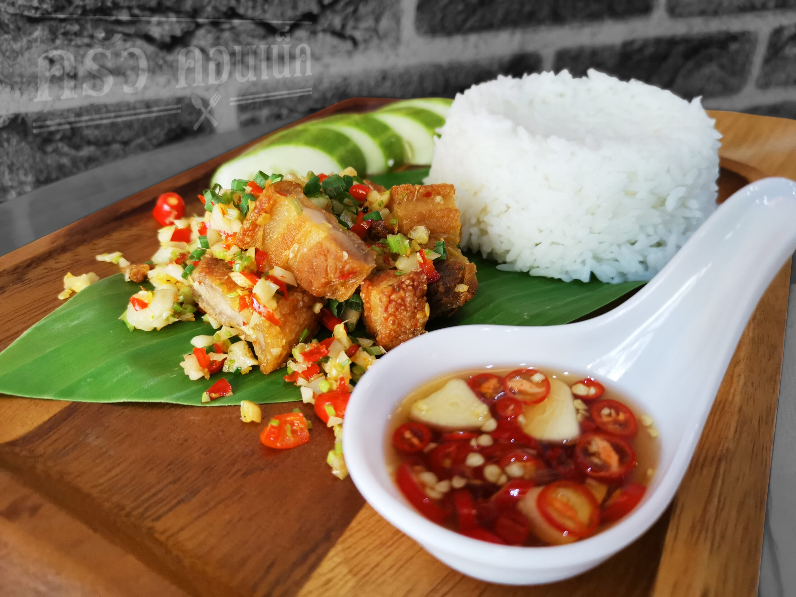 ข้าวหมูสามชั้นทอดน้ำปลา